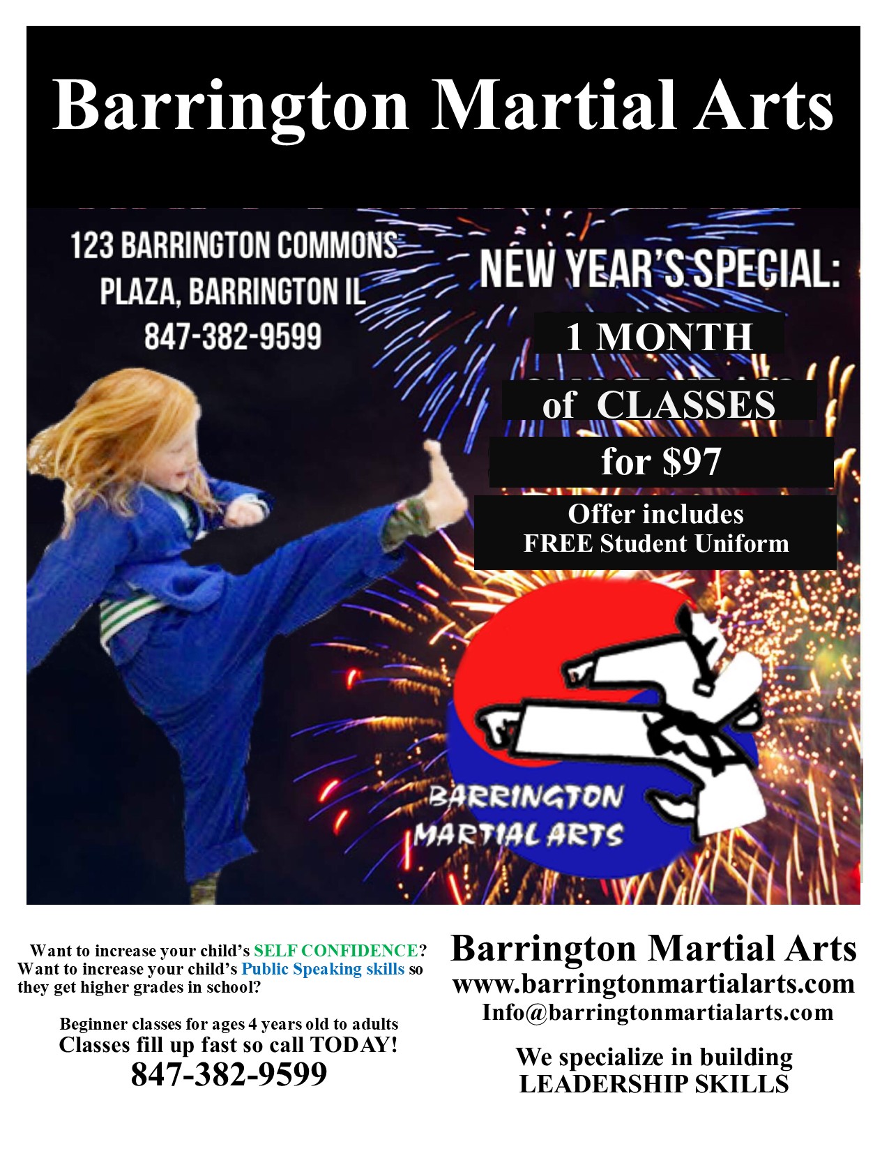 Great kids/adult Tae Kwon Do programs. Really teaches all the essentials: self confidence, self defense, focus, endurance.